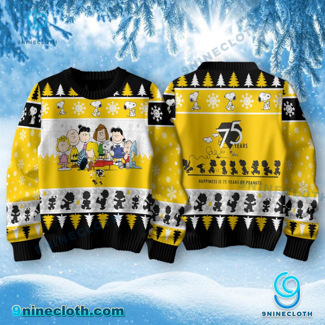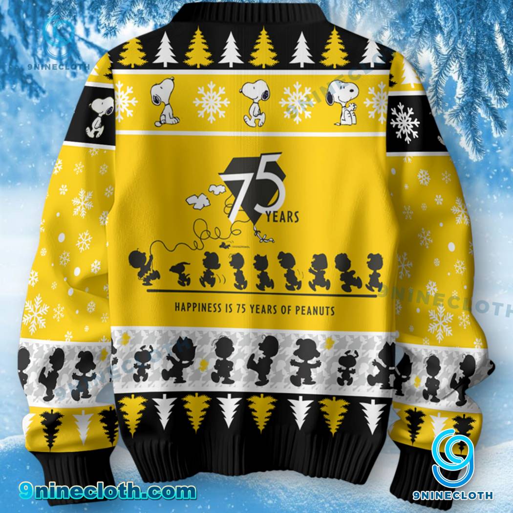 Spread holiday cheer with our exclusive Snoopy Happiness Is 75 Years Of Peanuts Ugly Christmas Sweater! This festive sweater is the perfect way to show your love for Snoopy, Charlie Brown, and the entire Peanuts gang while embracing the fun of the holiday season. It’s not just a sweater; it’s a nostalgic trip down memory lane, celebrating 75 years of Peanuts magic.
