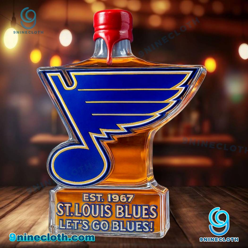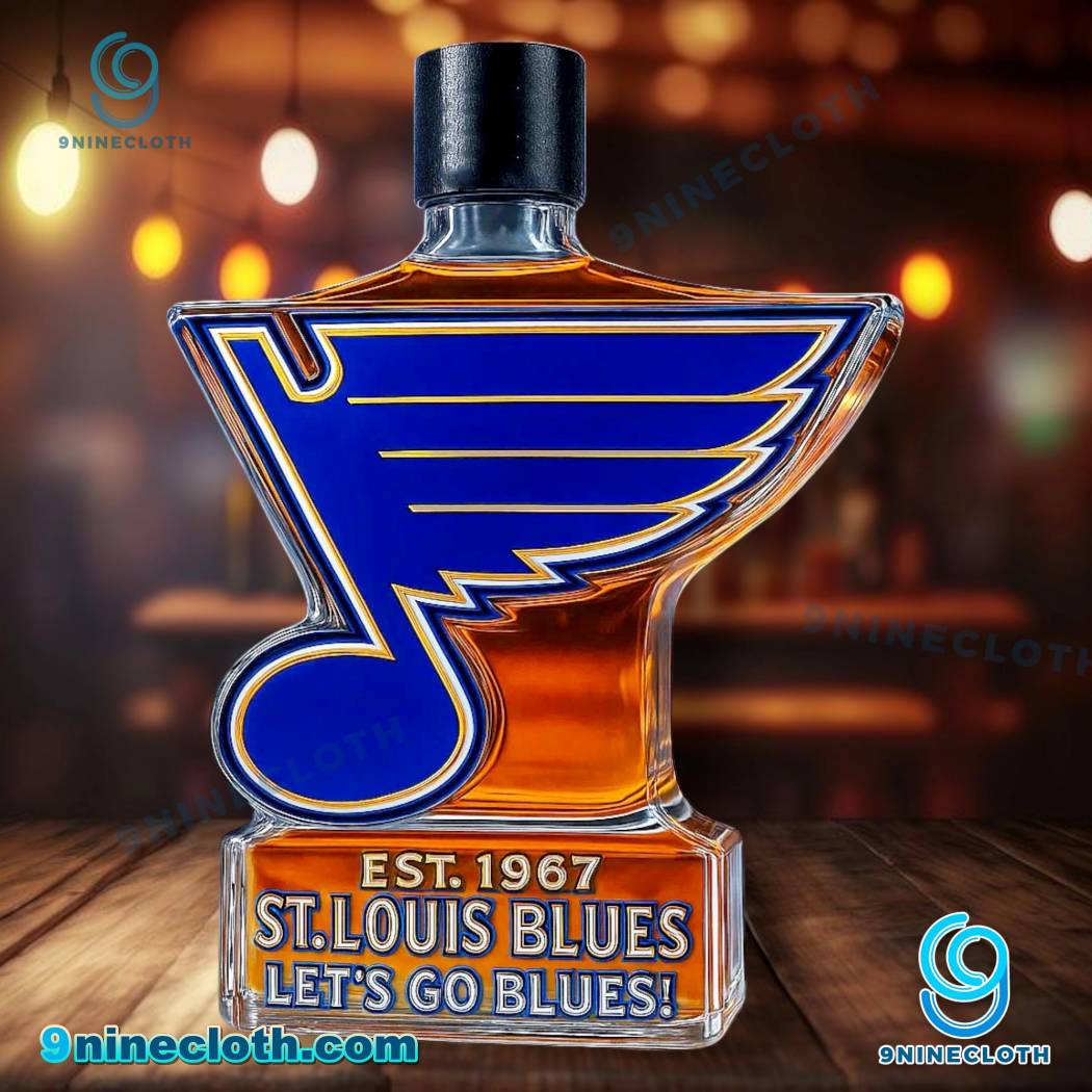 Keywords: St. Louis Blues, Blues hockey, NHL, whiskey bottle, custom bottle, sports memorabilia, fan gear, home bar, “Let’s Go Blues”, hockey gift, 9ninecloth.