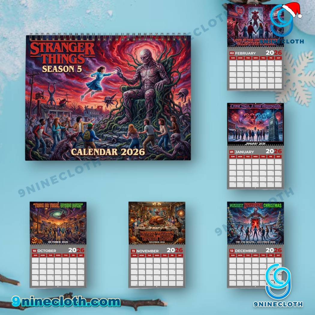 Keywords: Stranger Things, Stranger Things Season 5, 2026 Calendar, Wall Calendar, Netflix, Hawkins, Eleven, Demogorgon, Fan Merchandise, TV Show, 9ninecloth, gifts for fans.