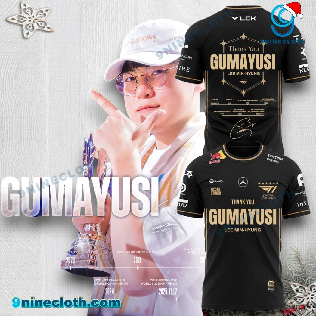 Keywords: T1, Gumayusi, T-Shirt, Full Print, League of Legends, Esports, Fan Gear, Korean Esports, Cotton Blend, Polyester, Comfortable, Durable, Vibrant, Moisture-Wicking, Breathable, 9ninecloth