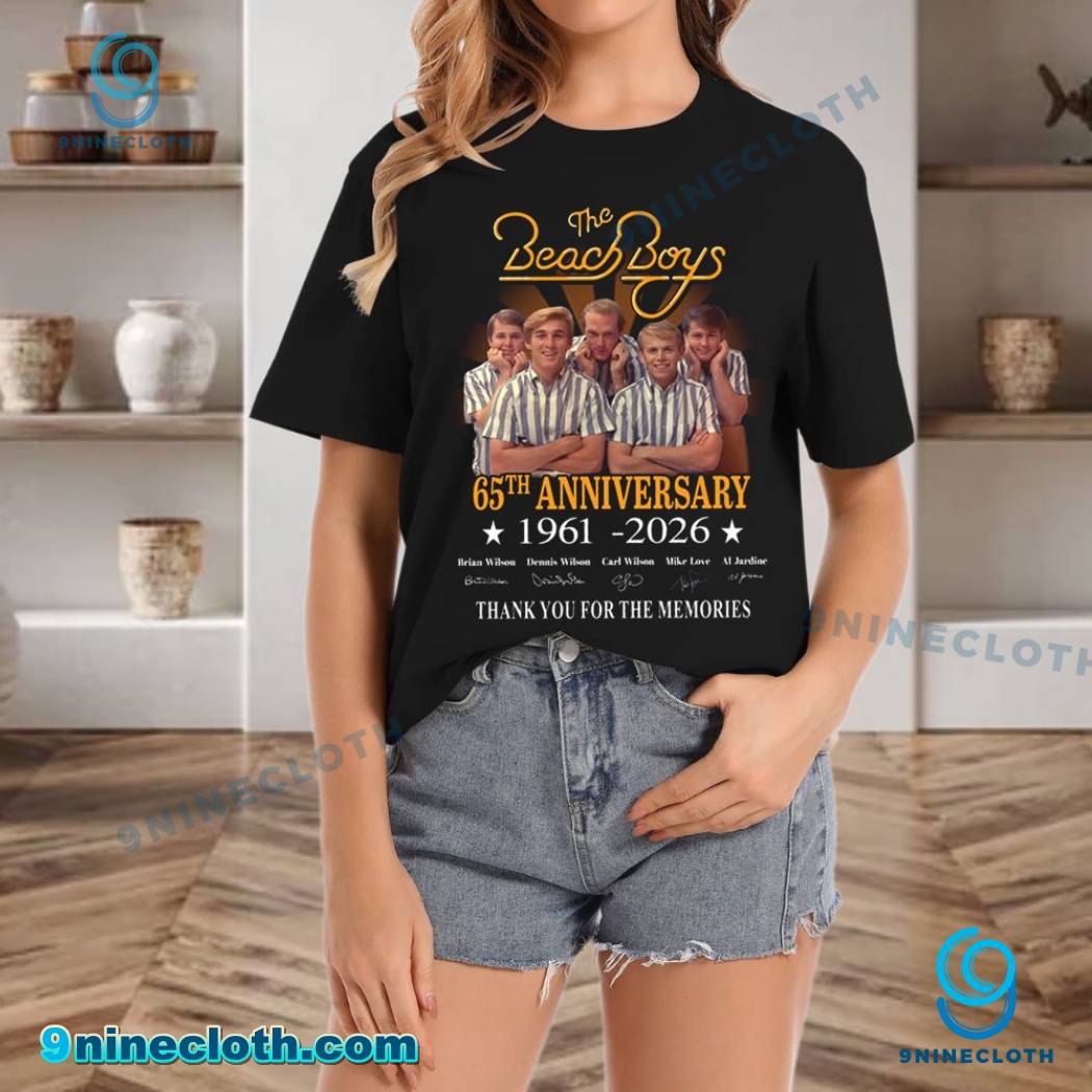 Keywords: The Beach Boys, 65th Anniversary, T-Shirt, Hoodie, Sweatshirt, Music, California Sound, Surf Rock, Brian Wilson, Mike Love, Carl Wilson, Dennis Wilson, Al Jardine, 1961-2026, Fan Merchandise, 9ninecloth
