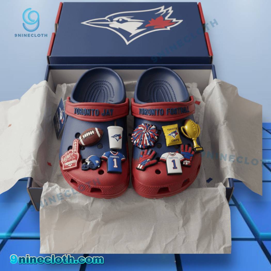 Keywords: Toronto Blue Jays, Blue Jays Crocs, MLB Crocs, baseball Crocs, sports Crocs, Crocs with charms, fan gear, team apparel, 9ninecloth, EVA Crocs.