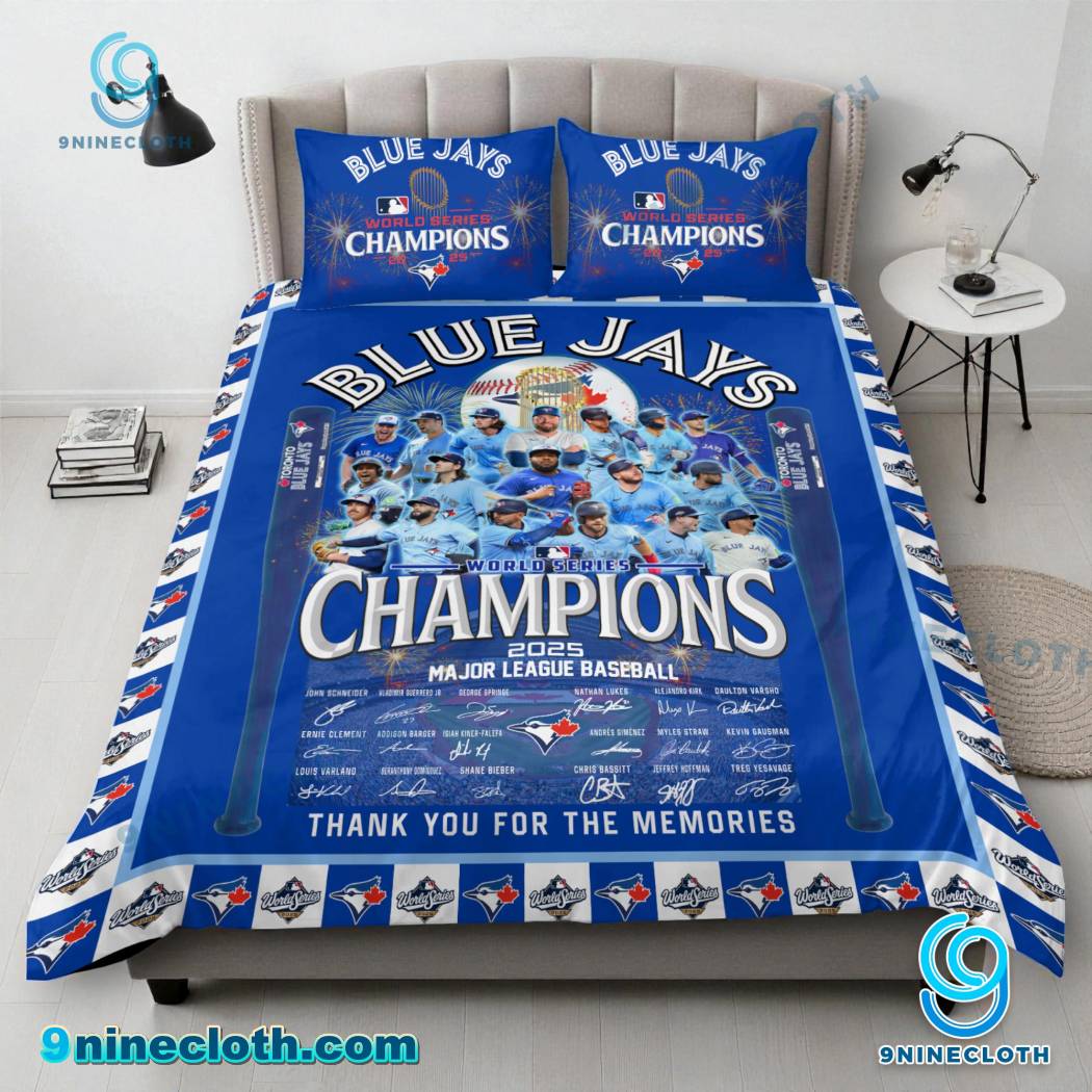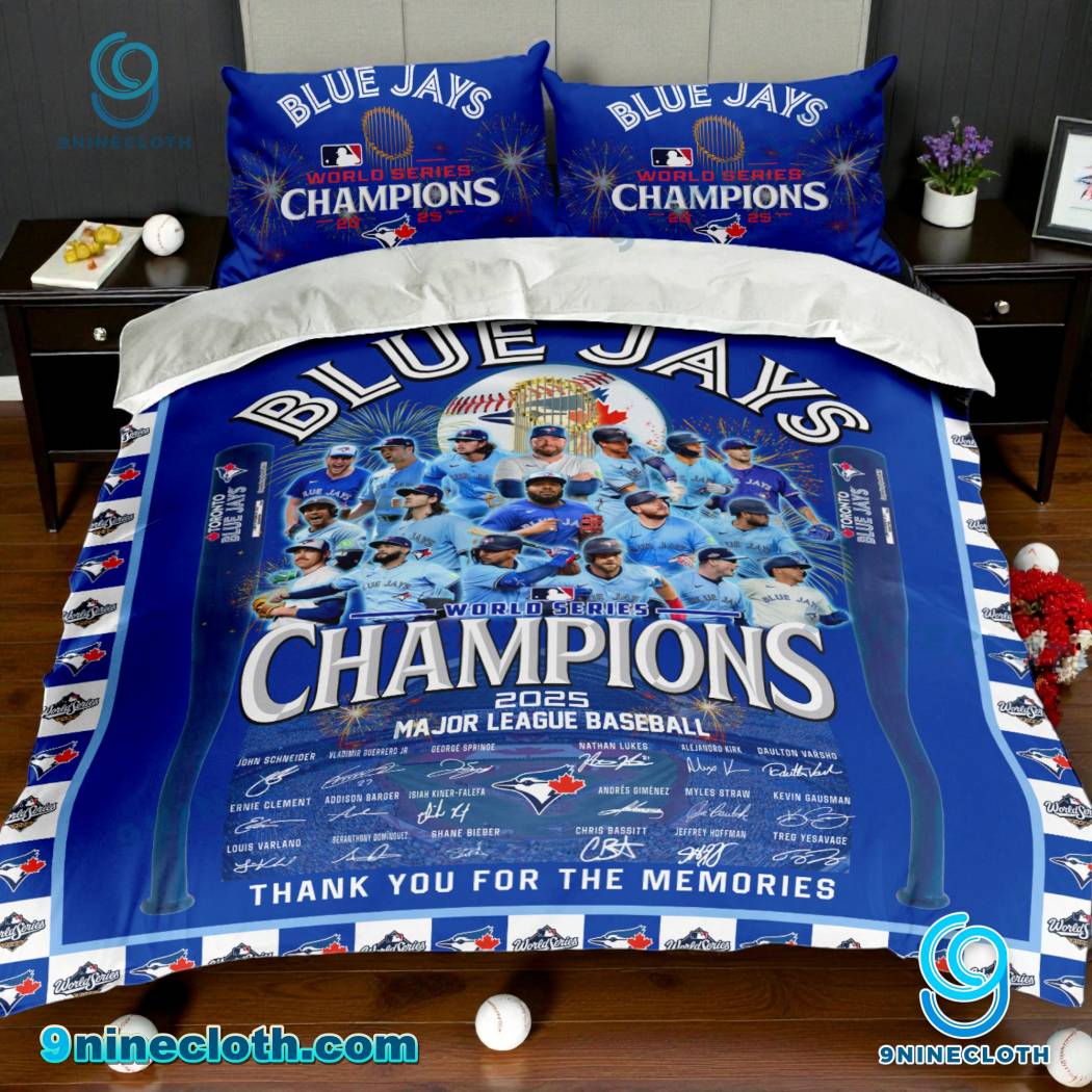 Keywords: Toronto Blue Jays, World Series Champions, 2025, Bedding Set, Baseball, MLB, Fan Gear, Home Decor, Bedroom, Blanket Cover, Fitted Sheet, Pillow Cover, Gift, 9ninecloth, Team Pride, Sports, Champions