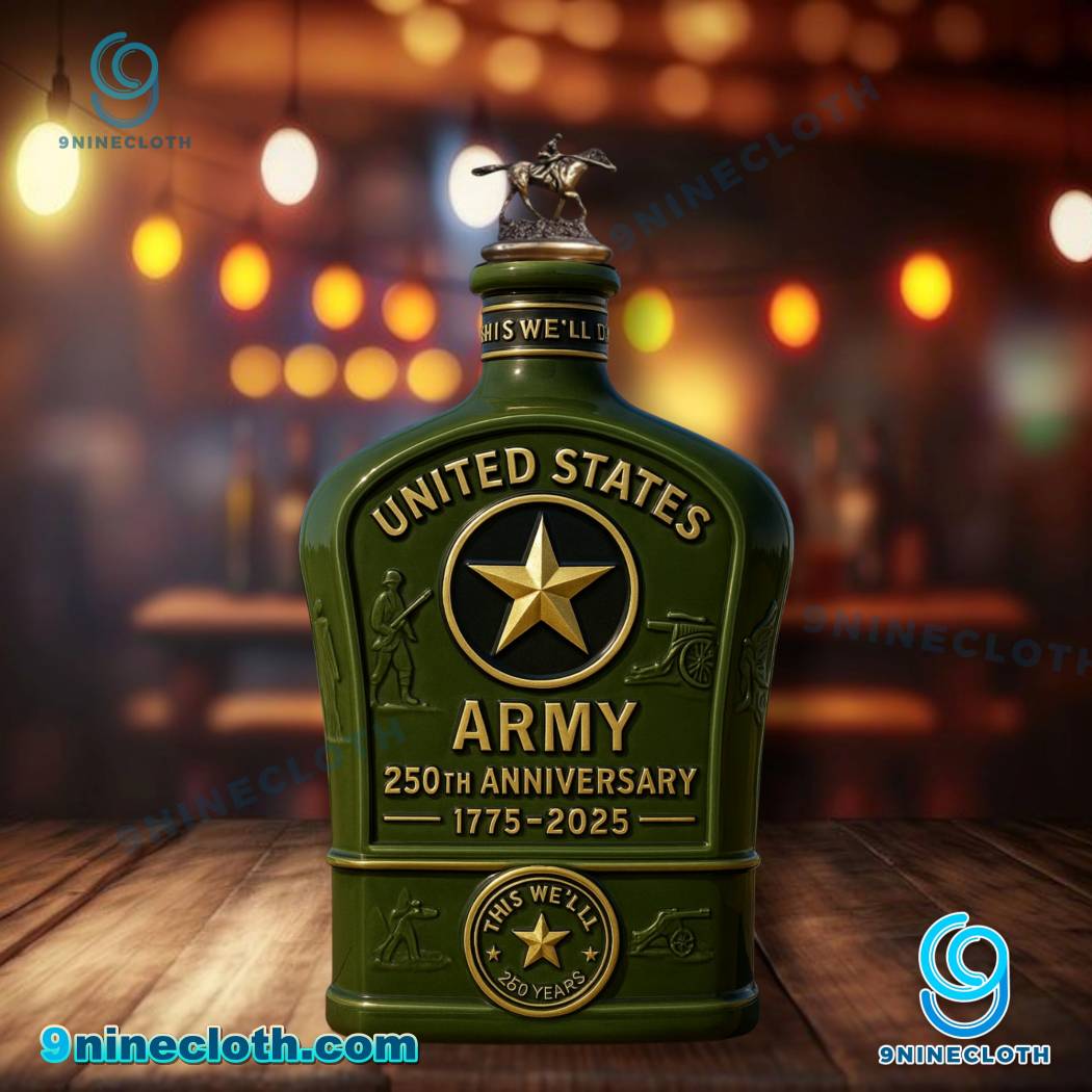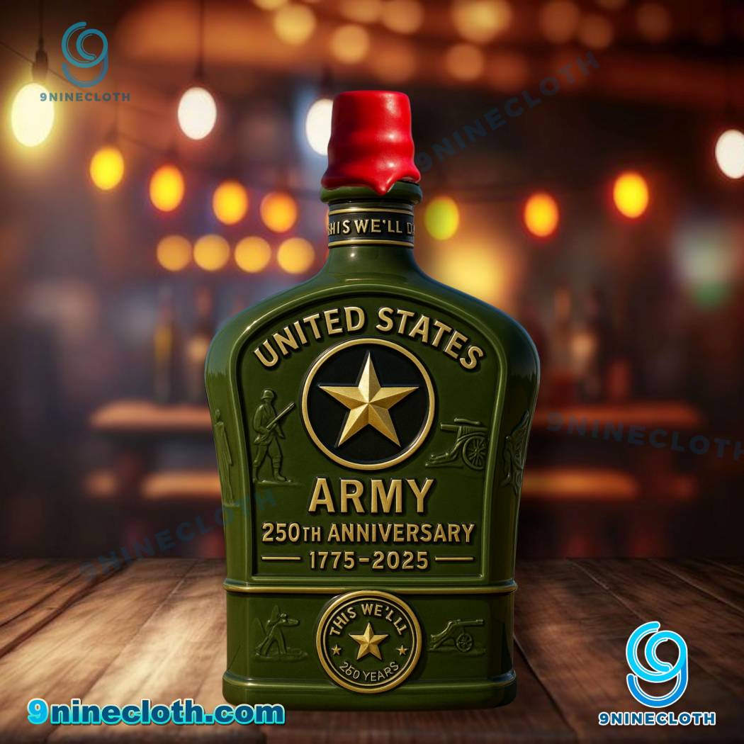 Keywords: United States Army, 250th Anniversary, Whiskey Bottle, Glass Bottle, Collectible, Military, 1775-2025, Patriotic, Red Wine, Cocktails, Home Decor, Gift, Veteran, 9ninecloth