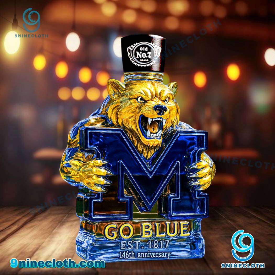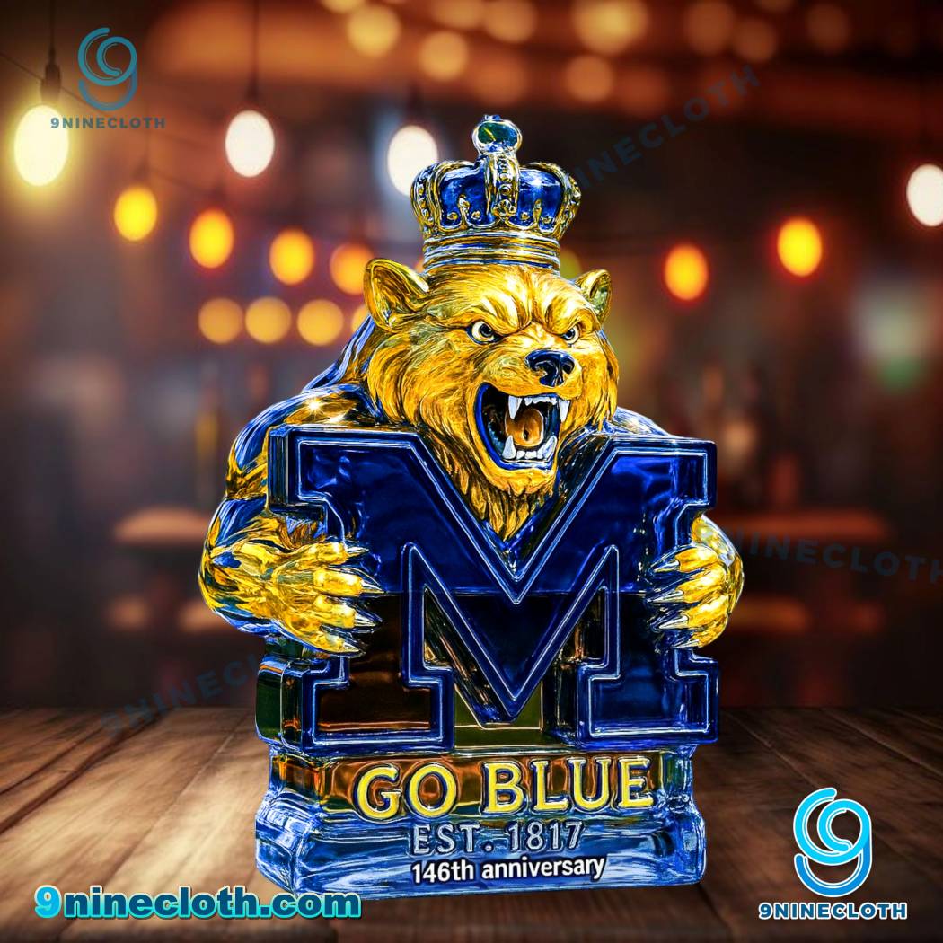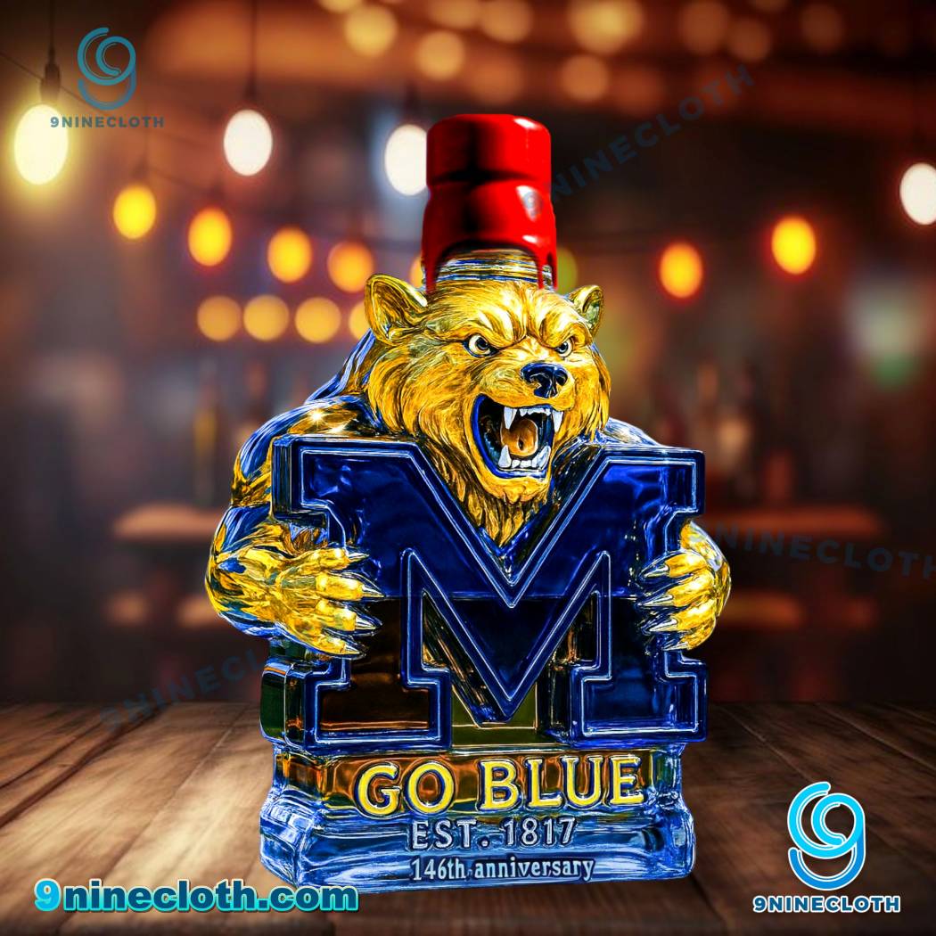 Keywords: University of Michigan, Wolverines, 146th Anniversary, Whiskey Bottle, Custom Bottle, Glass Bottle, Michigan Alumni, College, Football, Gift Ideas, Home Bar, Collectible, 9ninecloth