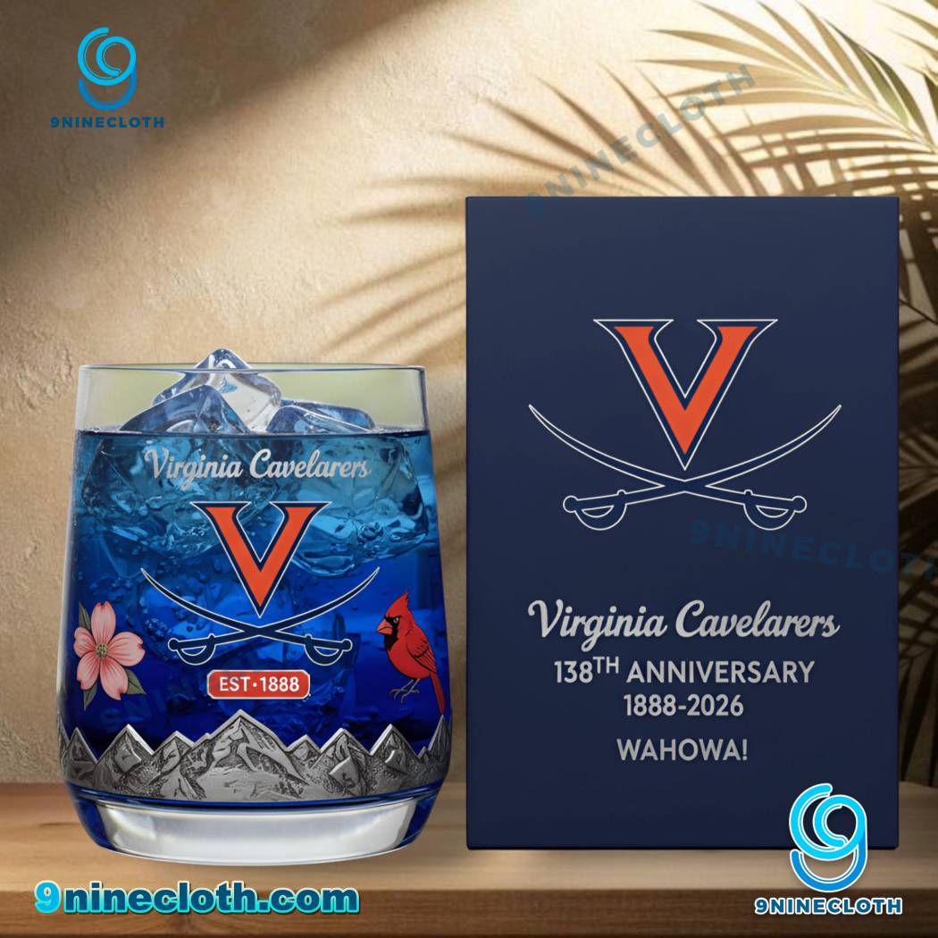 Keywords: Virginia Cavaliers, Whiskey Glass, Anniversary, 138th Anniversary, 1888-2026, College Sports, Fan Gear, Cavaliers, University of Virginia, Sports Memorabilia, Drinkware, Gift Ideas, Collegiate, 9ninecloth, UVA, Wahoos