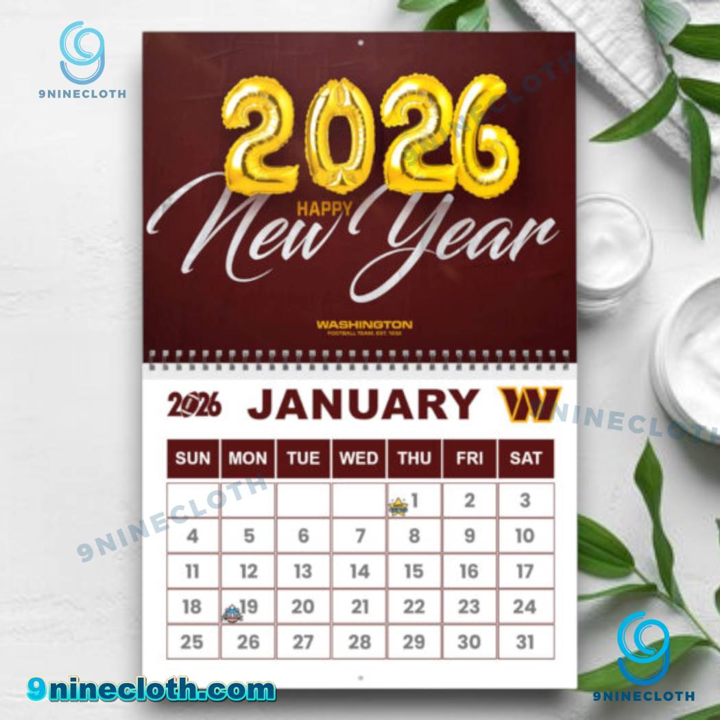 Keywords: Washington Commanders, NFL, Football, 2026 Calendar, Wall Calendar, Team Merchandise, Football Calendar, Sports Calendar, Gift for Football Fan, 9ninecloth, Washington Commanders Fan, NFL Calendar, Commanders 2026, FedExField.