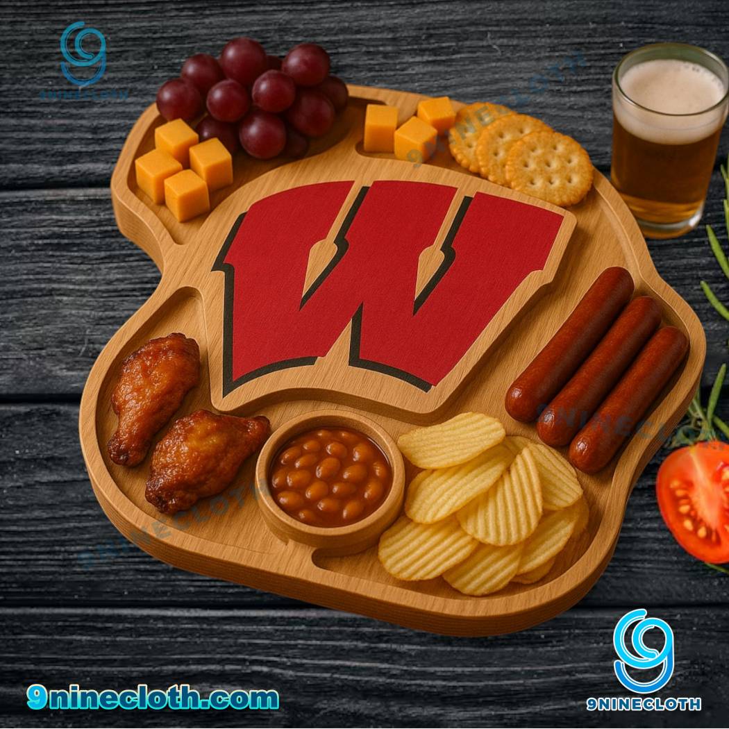 Keywords: Wisconsin Badgers, NCAA, Charcuterie Board, Wooden Board, Cheese Board, Serving Tray, Game Day, Party Supplies, College Sports, Badger Pride, 9ninecloth, Wisconsin Football, Wisconsin Basketball, Bucky Badger