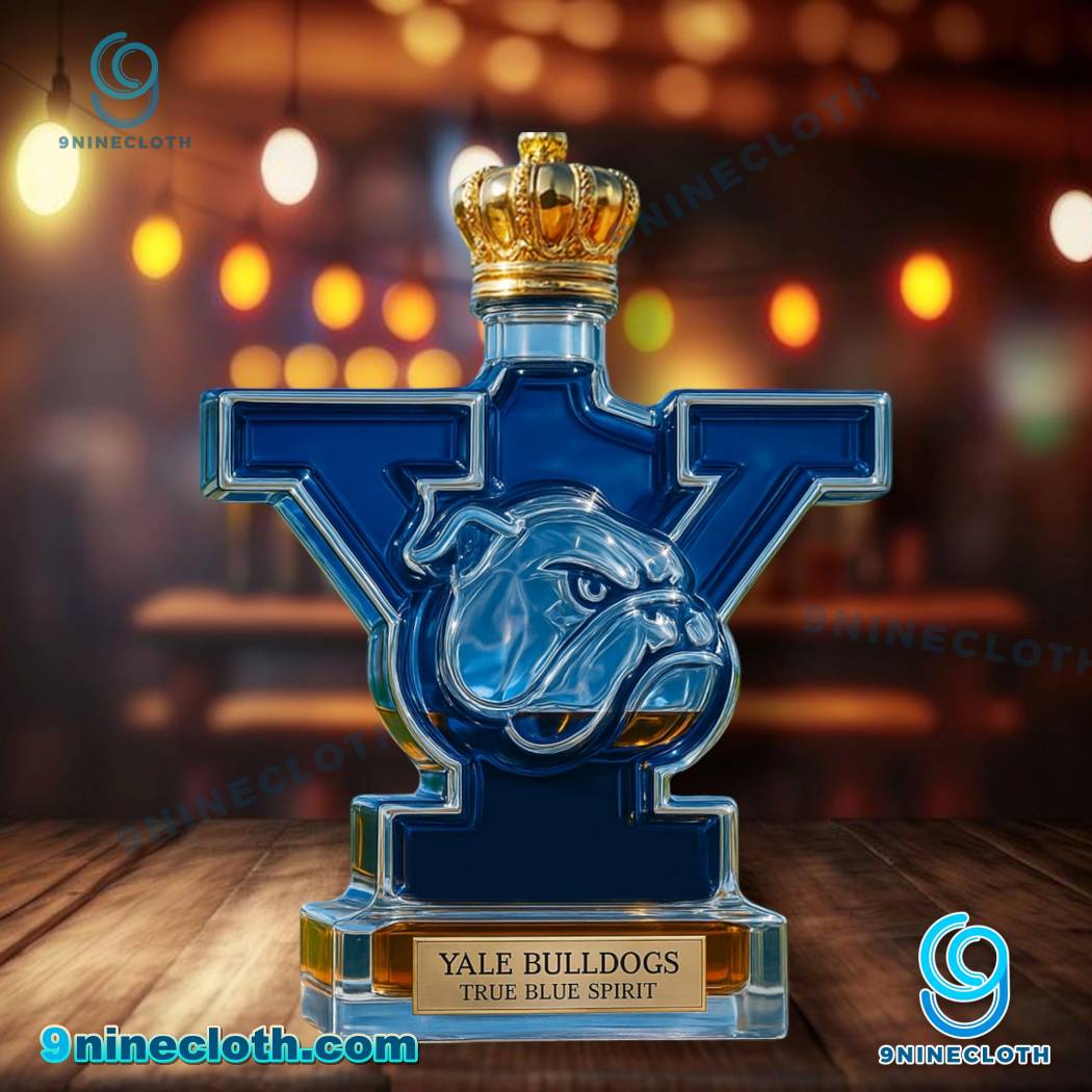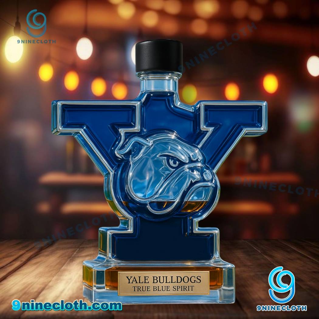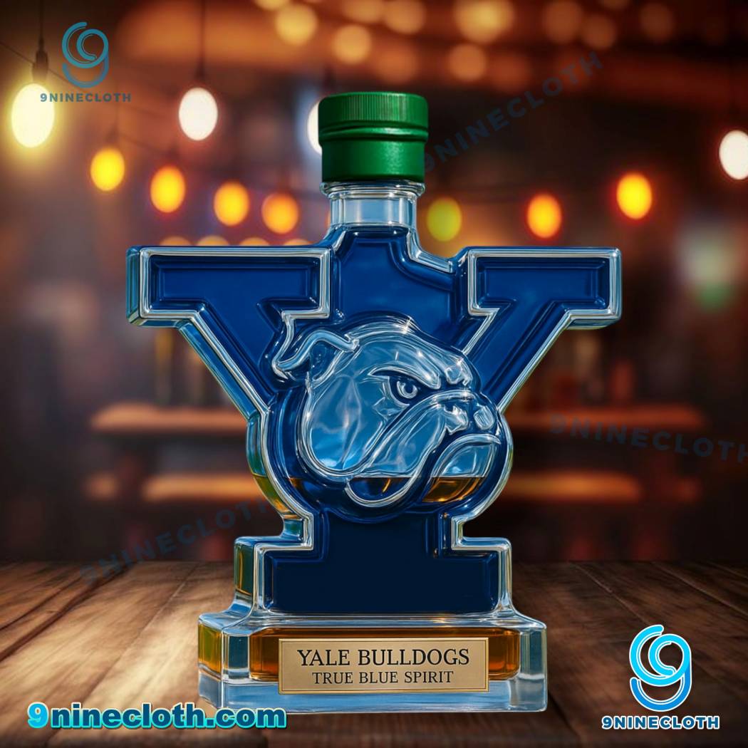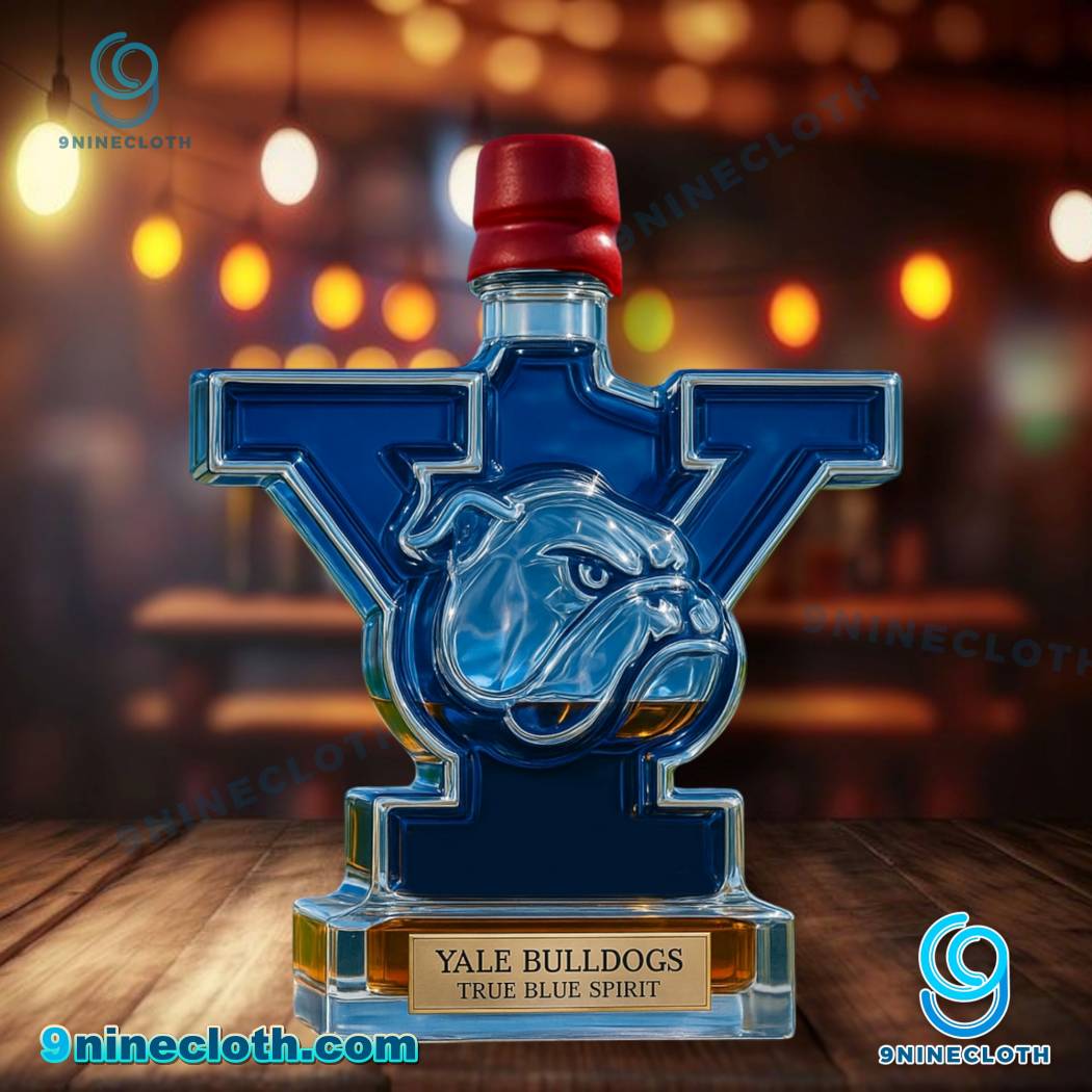 Keywords: Yale Bulldogs, Whiskey Bottle, College, University, Sports, Gift, Fan Gear, Home Decor, Barware, True Blue, Spirit, Custom Shape, Glass, 9ninecloth, Bulldogs